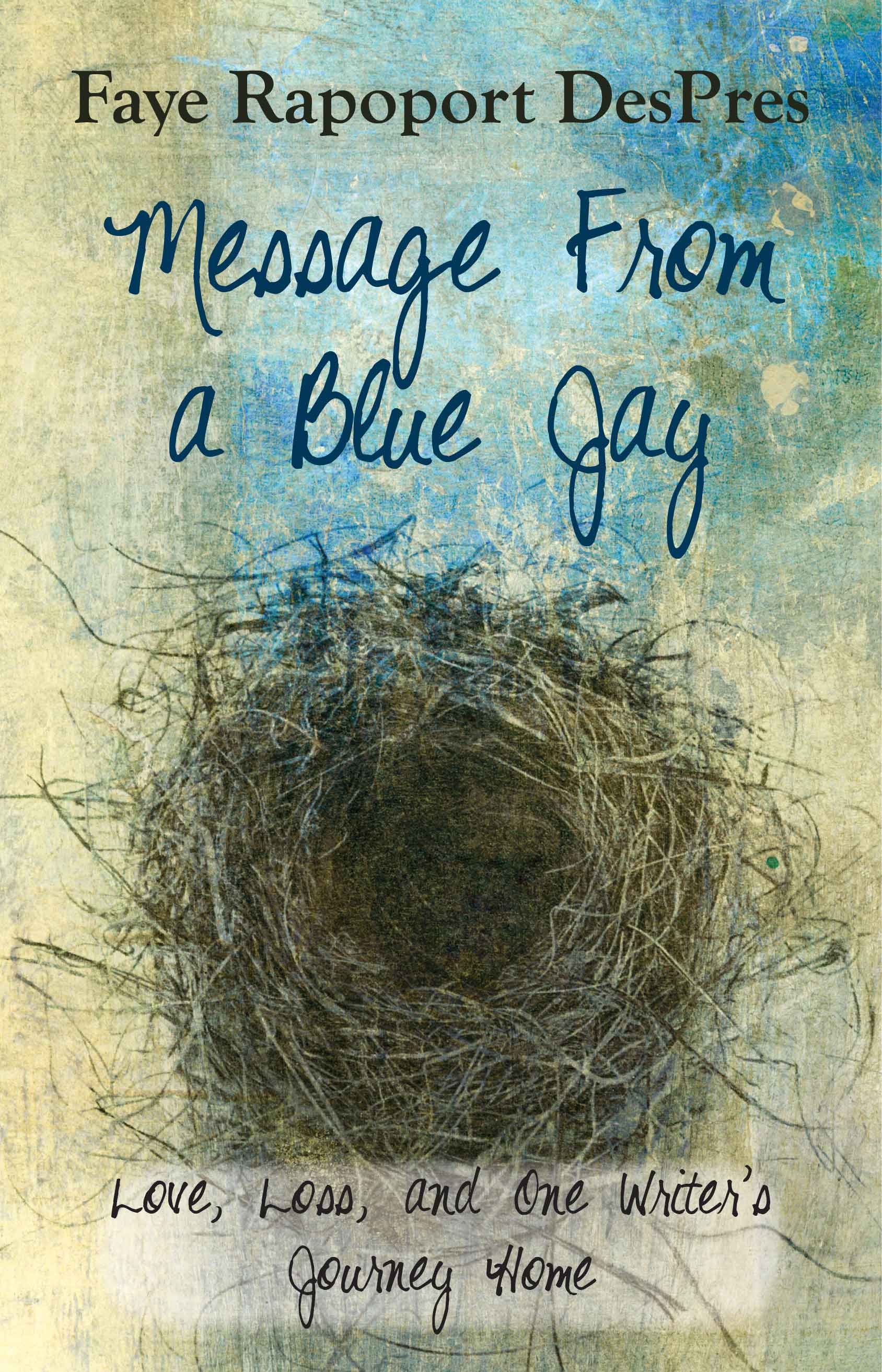 Today is the publisher’s “Cover Reveal” showing the world the cover of Faye’s book, entitled, Message from a Blue Jay – Love, Loss, and One Writer’s Search for Home.